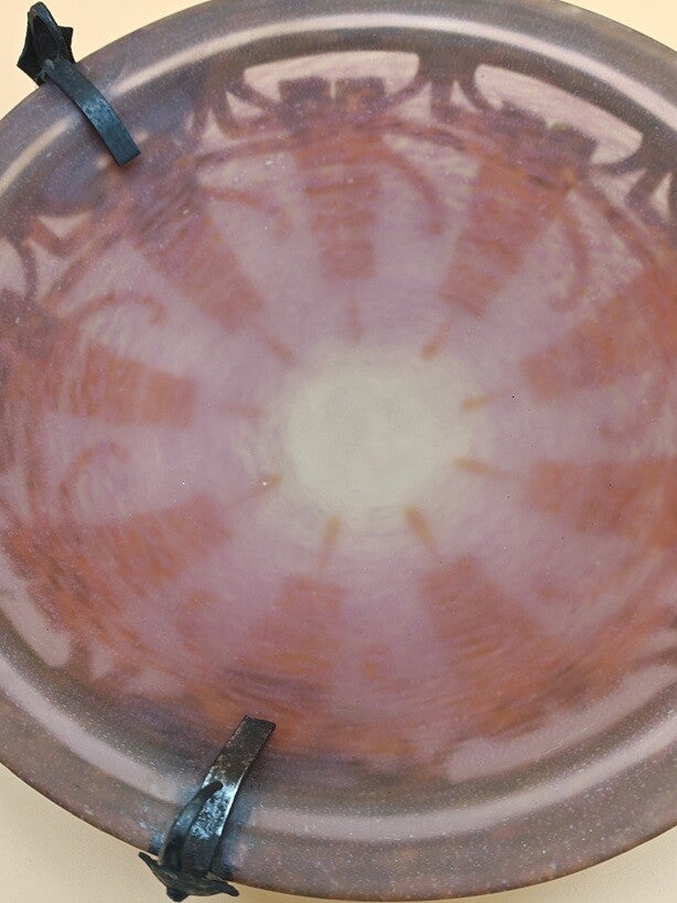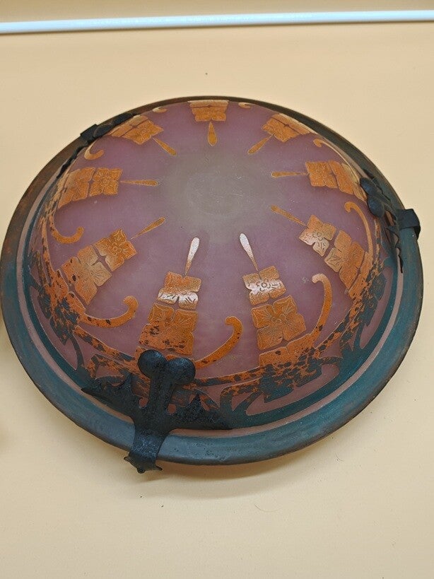 verre légèrement poudré rose doublé de verre poudré orange dégradé vert vers le bas