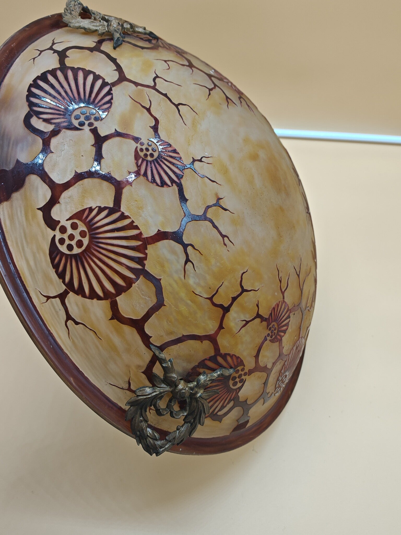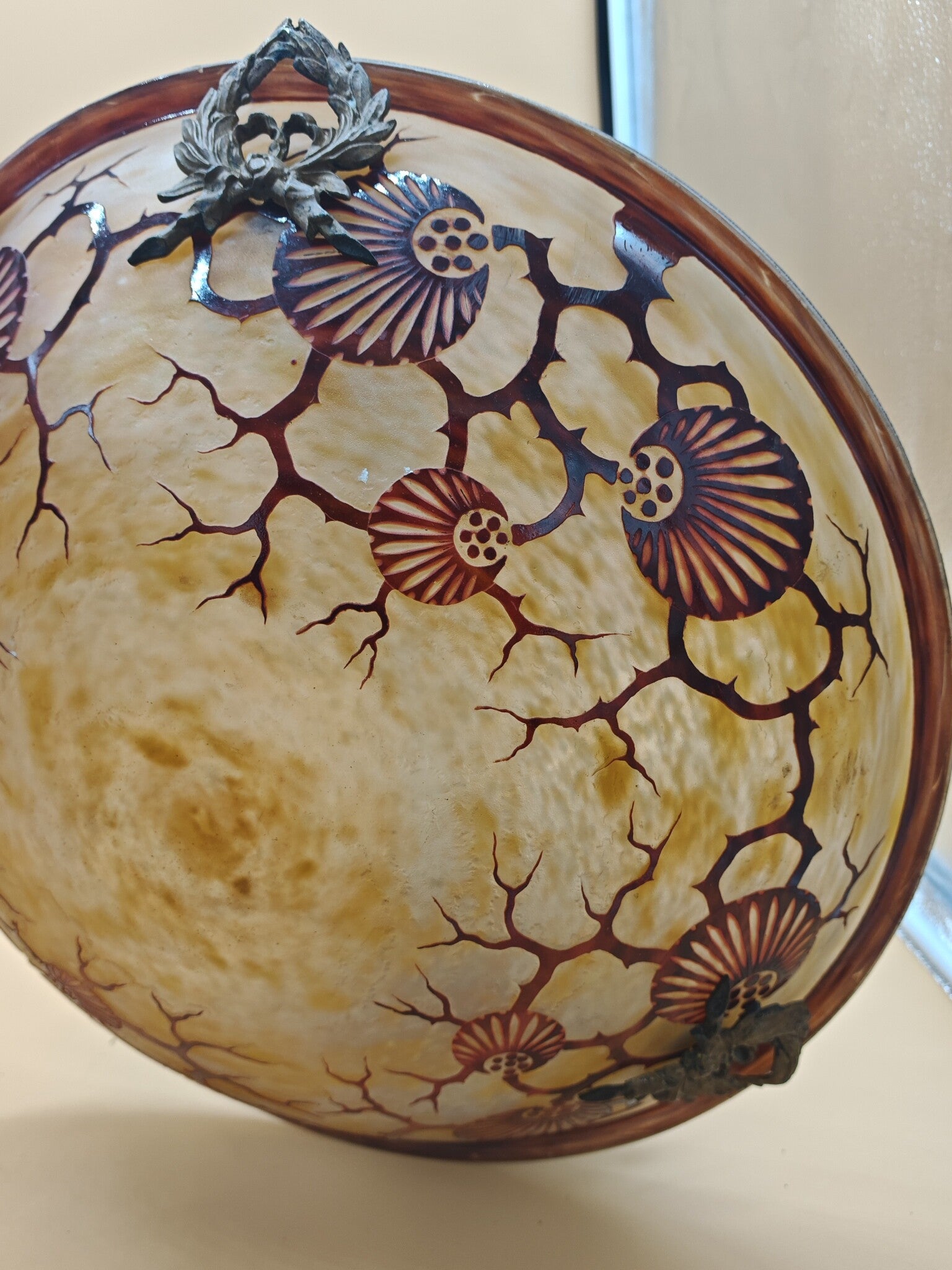 verre poudré jaune et orange doublé de verre poudré violet brun